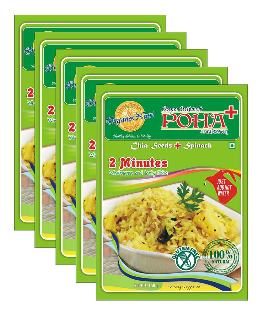 OrganoNutri Super Instant Poha + (Pack of 5), Chia Seeds + Spinach 800 g