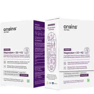 Origins Nutra Magnesium + D3 + K2 for Men, 56 capsules, Unflavoured (Pack of 2)