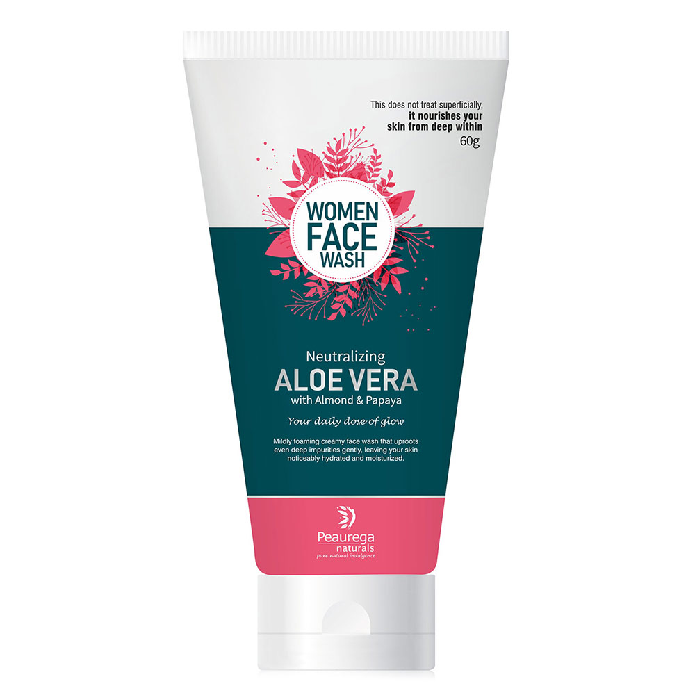 Peaurega Natural Neutralizing Aloe Vera Women Face Wash with Almond and Papaya, 60 g for All Skin Types