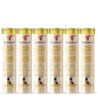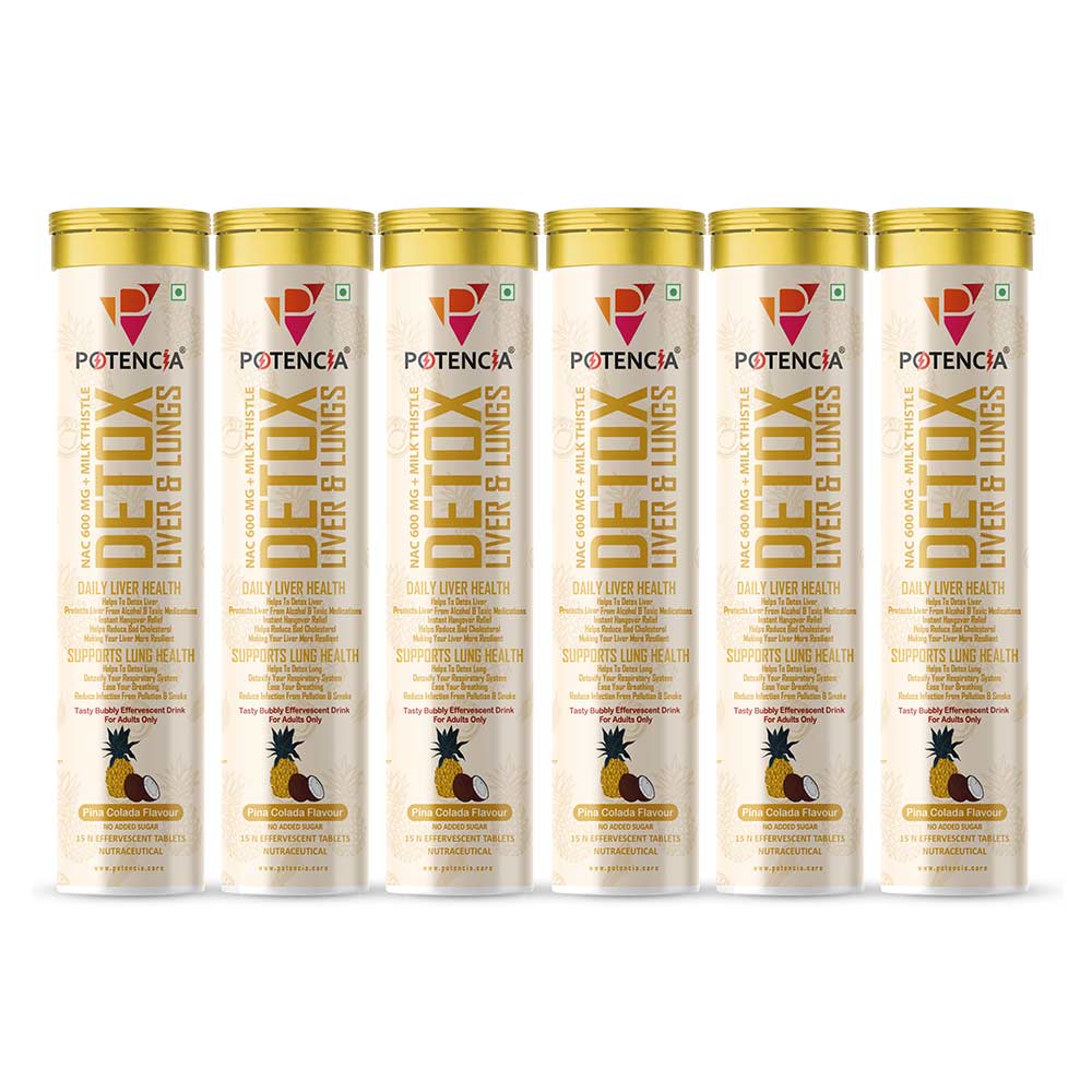 Potencia Detox Liver & Lungs Effervescent Pina Colada (Pack of 6), 15 tablet(s)