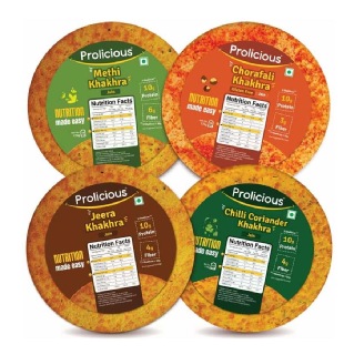 4 - Prolicious Jain Khakhra Combo,  Methi, Jeera, Chilli Coriander & Chorafali (Pack of 4)  170 g