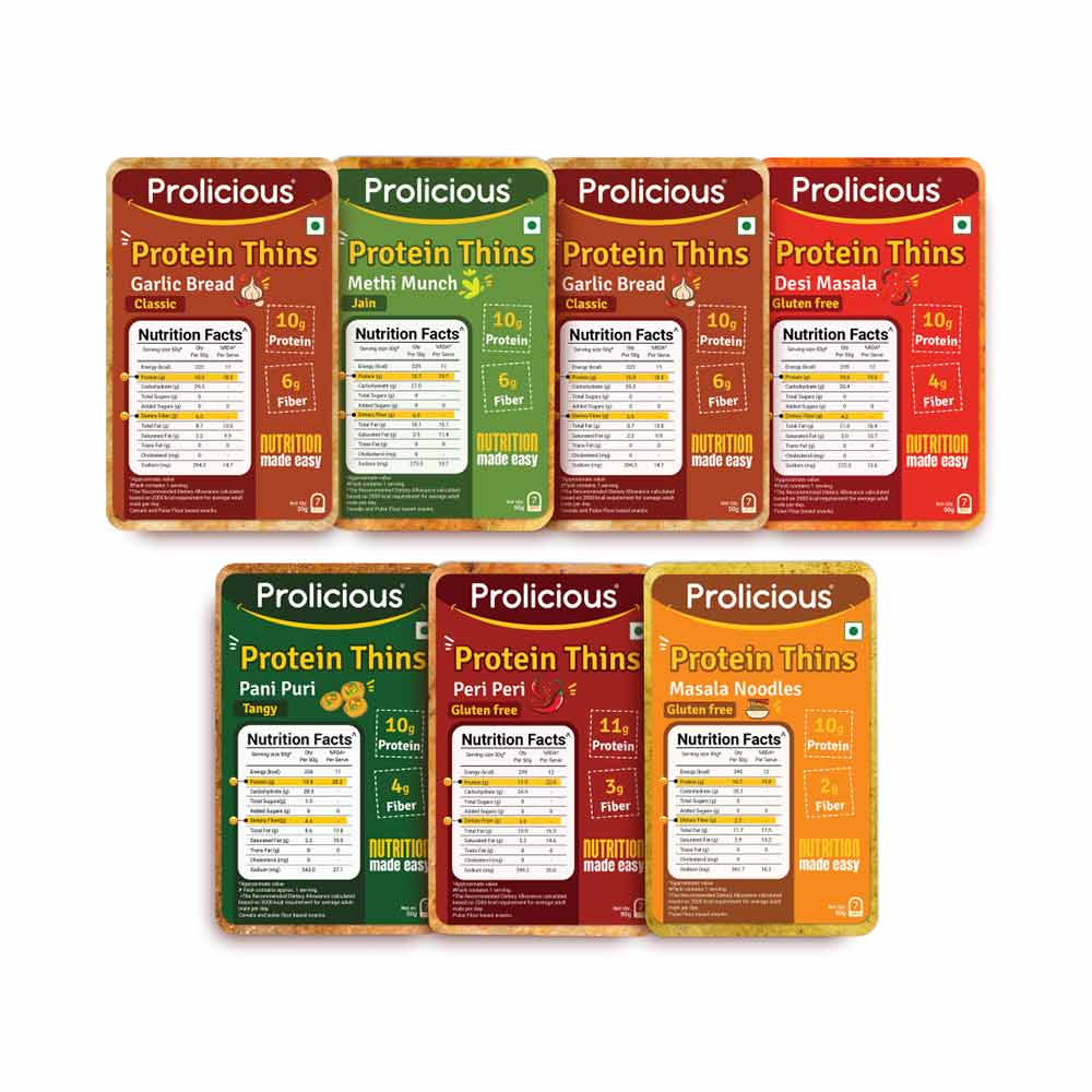 Prolicious Protein Thins Snack Chips, 50 g, Assorted (Pack of 7)