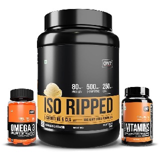 QNT ISO Ripped, Omega 3 (1000 mg) 60 Softgels & Daily Vitamins 60 capsules Combo, 1 kg (2.2 lb), Kesar Malai Kulfi