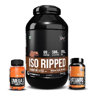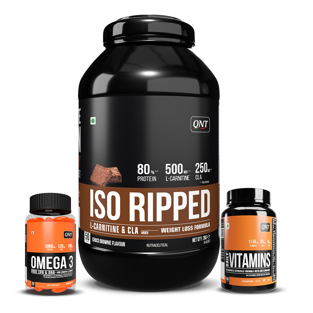 QNT ISO Ripped, Omega 3 (1000 mg) 60 Softgels & Daily Vitamins 60 capsules Combo, 2 kg (4.4 lb), Choco Brownie