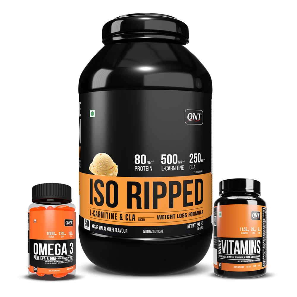 QNT ISO Ripped, Omega 3 (1000 mg) 60 Softgels & Daily Vitamins 60 capsules Combo, 2 kg (4.4 lb), Kesar Malai Kulfi