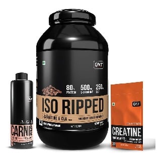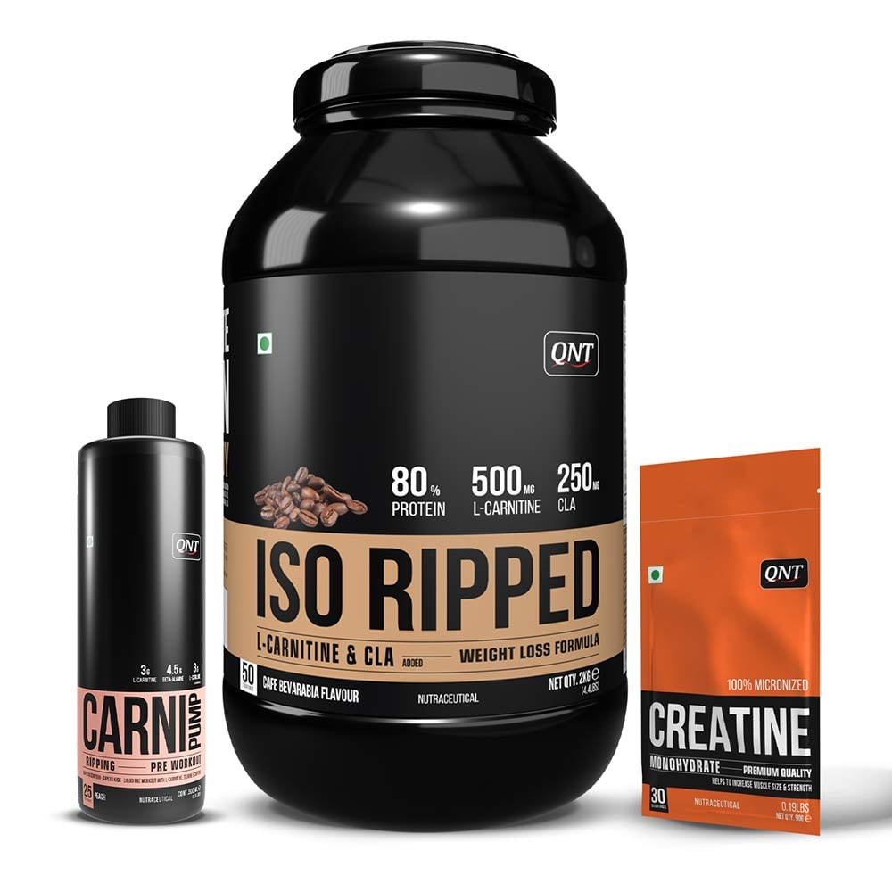 1 - QNT ISO Ripped, Carnipump Ripping Pre-workout 500ml Peach & Creatine Monohydrate Unflavoured 0.198 lb Combo,  4.4 lb  Cafe Bevarabia