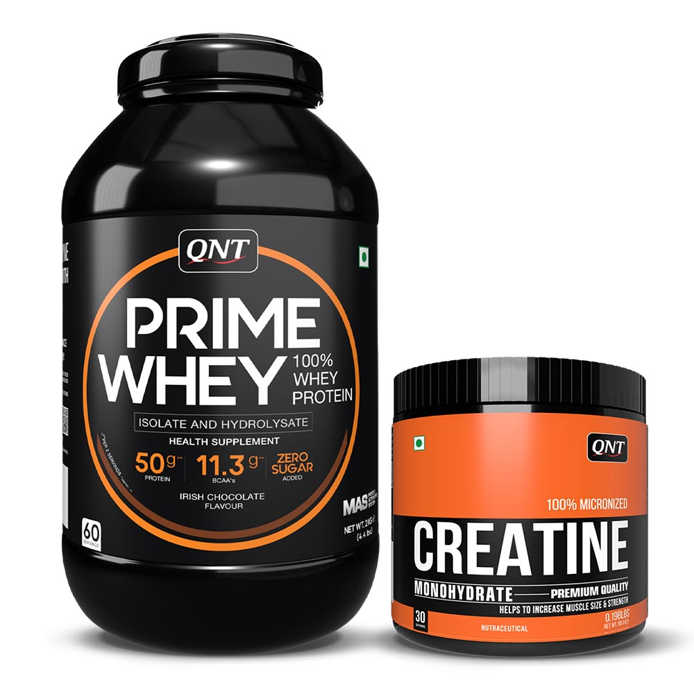 QNT Prime Whey & Creatine Monohydrate Unflavoured 0.198 lbs Combo, 2 kg (4.4 lb), Irish Chocolate