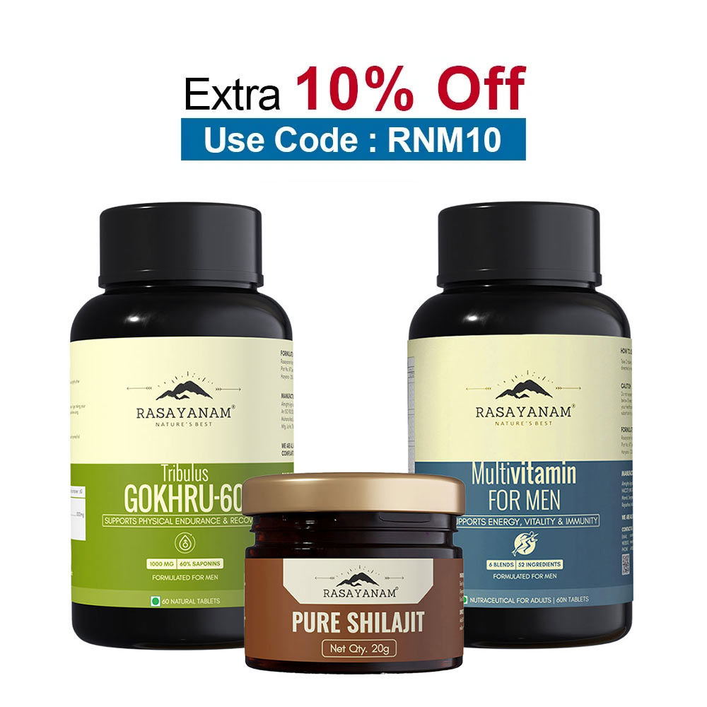 Rasayanam Pure Himalayan Shilajit 20g, Tribulas Gokhru-60 60 Tablets & Multivitamin for Men Combo,  60 tablet(s)  Unflavoured