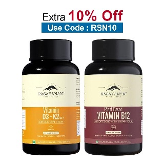 Vitamins & SupplementsVitaminsVitamin DRasayanam Vitamin D3 K2 (MK-7) 120 Tablets & Plant Based Vitamin B12 Combo