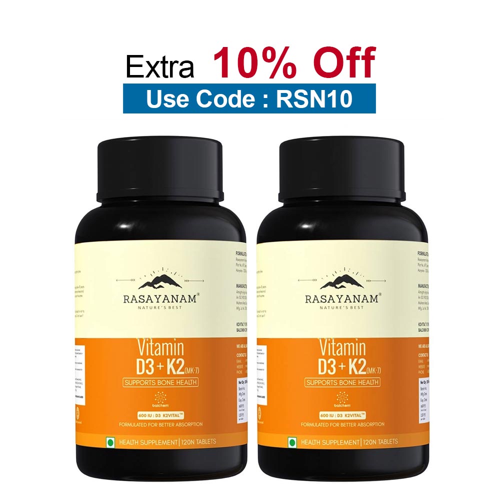 Rasayanam Vitamin D3 K2 (MK-7), 120 tablet(s), Unflavoured (Pack of 2)