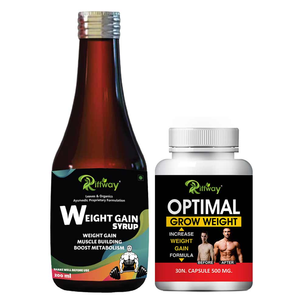 Riffway Weight Gain Syrup 200 ml & Optimal Grow Weight 30 Capsules Combo