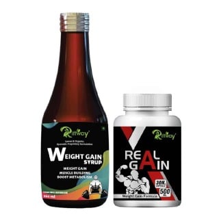 Riffway Weight Gain Syrup 200 ml & Real Gain 30 Capsules Combo