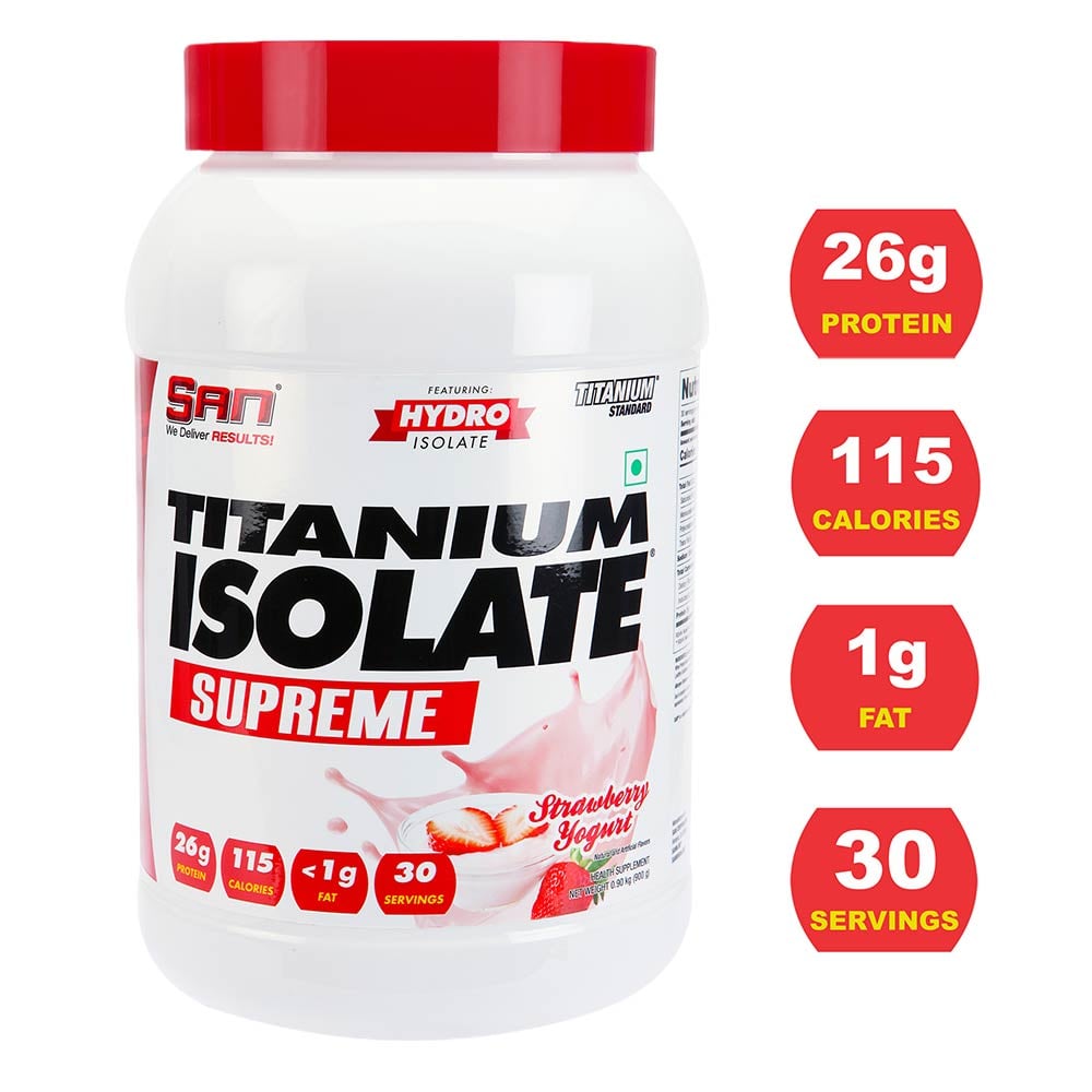 SAN Titanium Isolate Supreme, 900 g (1.98 lb), Strawberry Yogurt