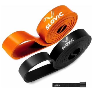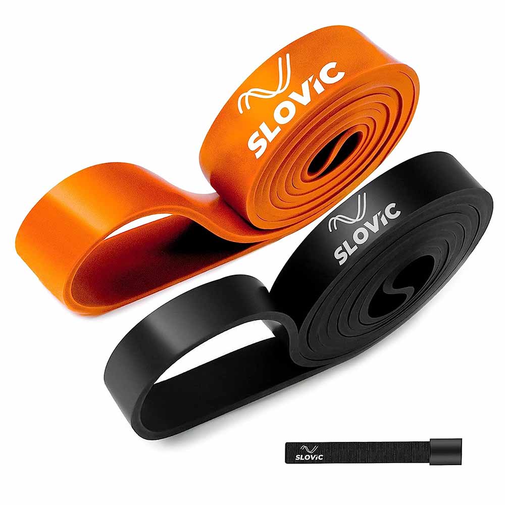 SLOVIC Fitness Resistance Band 42 inch Loop with Door Anchors, Black & Orange (Set of 2), Free Size