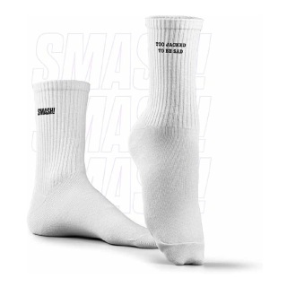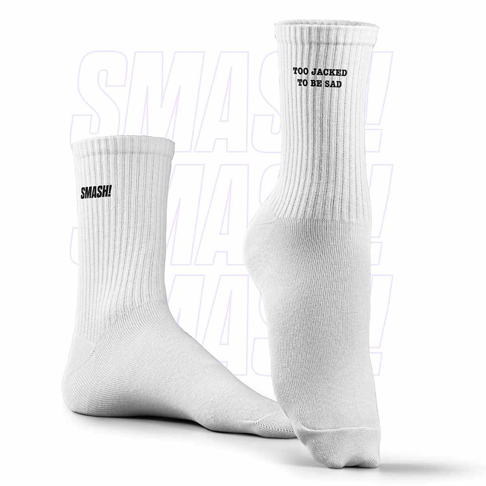 Smash Socks, Crew Length, White- Too Jacked