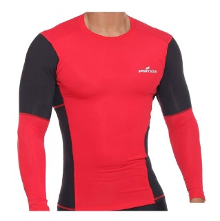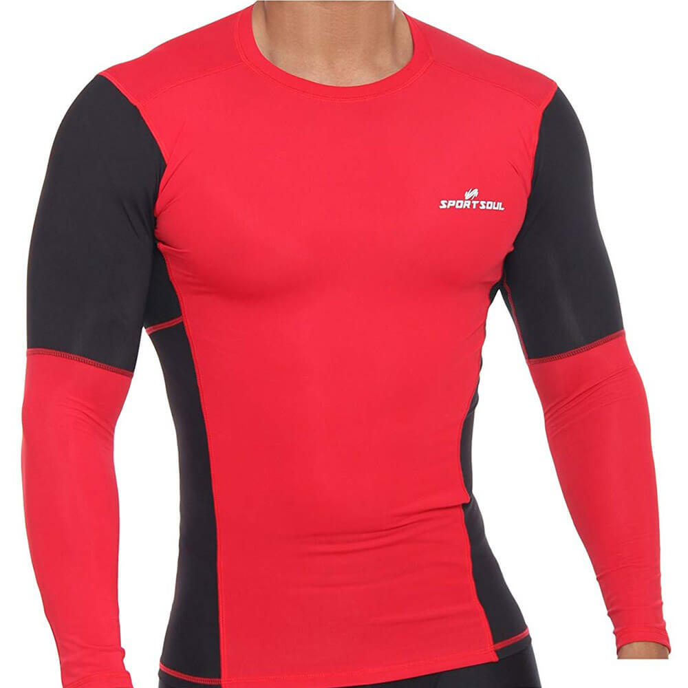 SportSoul Nylon Compression Skin Tight Full Sleeve Gym Tshirt (with Waterproof Carry Pouch),  Red & Black  Small