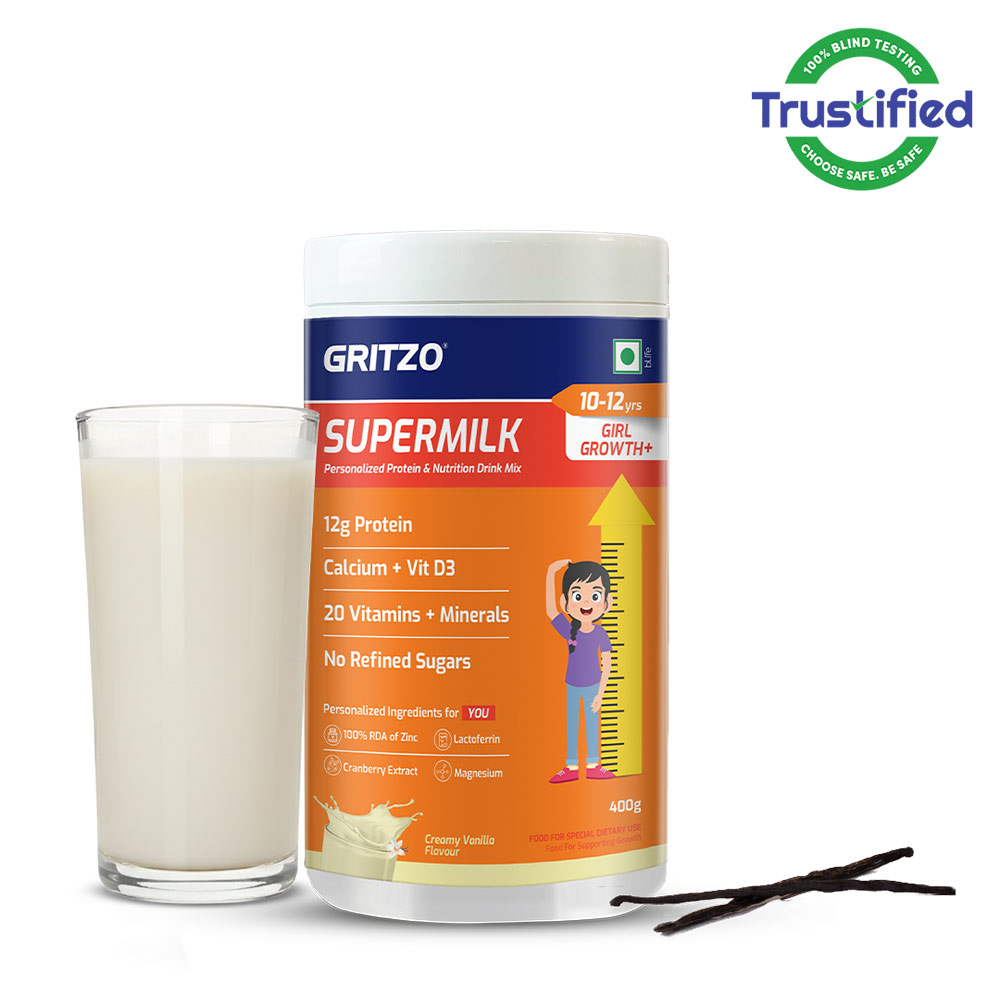 Supermilk Gritzo Growth+ for Girl 10 to 12 years, 400 g, Creamy Vanilla