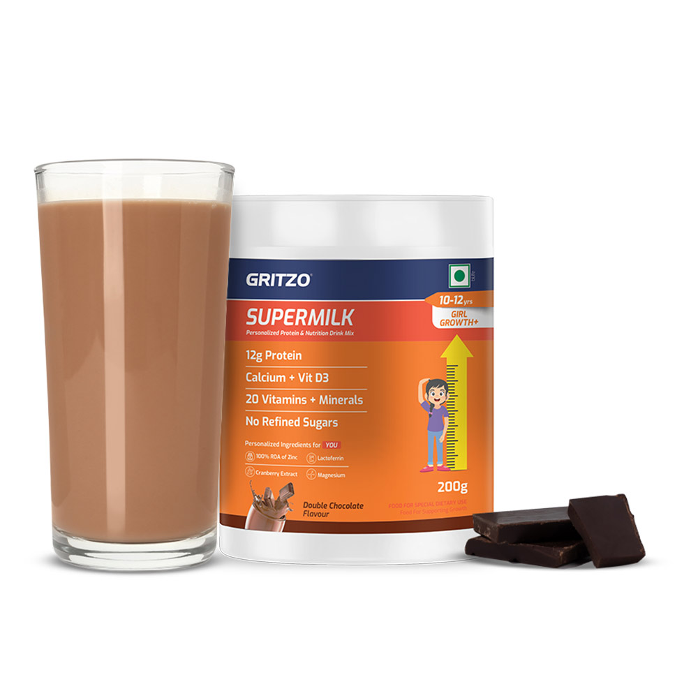 Supermilk Gritzo Growth+(Formerly Height+) for Girl 10 to 12 years, 200 g, Double Chocolate