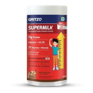 Supermilk Gritzo Height+ for 13+ Yrs Boys Personalized Protein & Nutrition Drink Mix OP, 400 g, Cafe Mocha