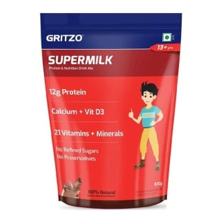 Supermilk Gritzo Overall Growth for Boy 13+ Yrs Protein & Nutrition Drink Mix OP, 800 g, Double Chocolate