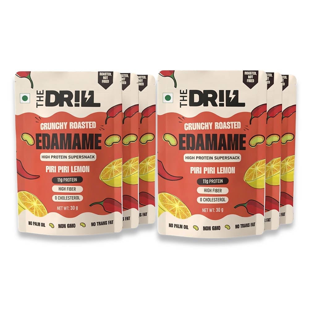 The Drill Crunchy Roasted Edamame, 30 g, Piri Piri Lemon (Pack of 6)