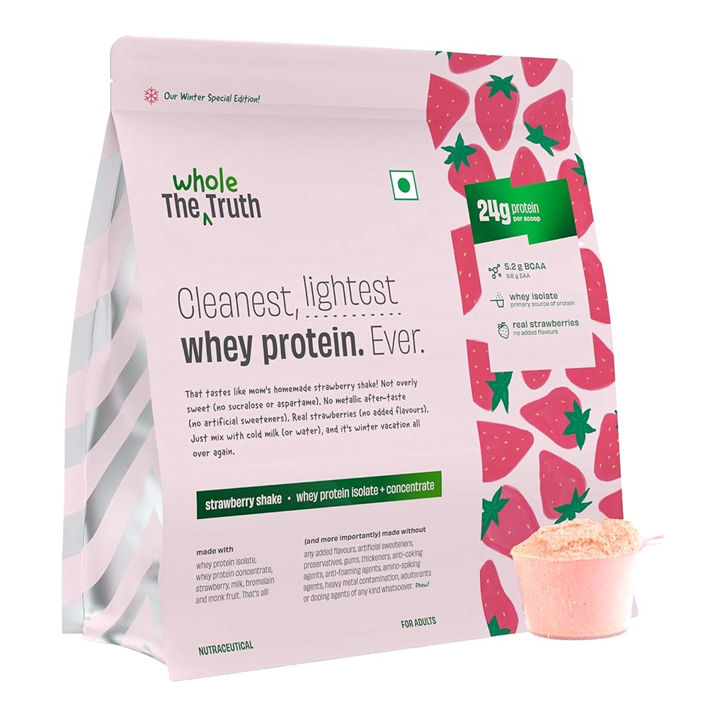 The Whole Truth Whey Protein, 1 kg (2.2 lb), Strawberry Shake