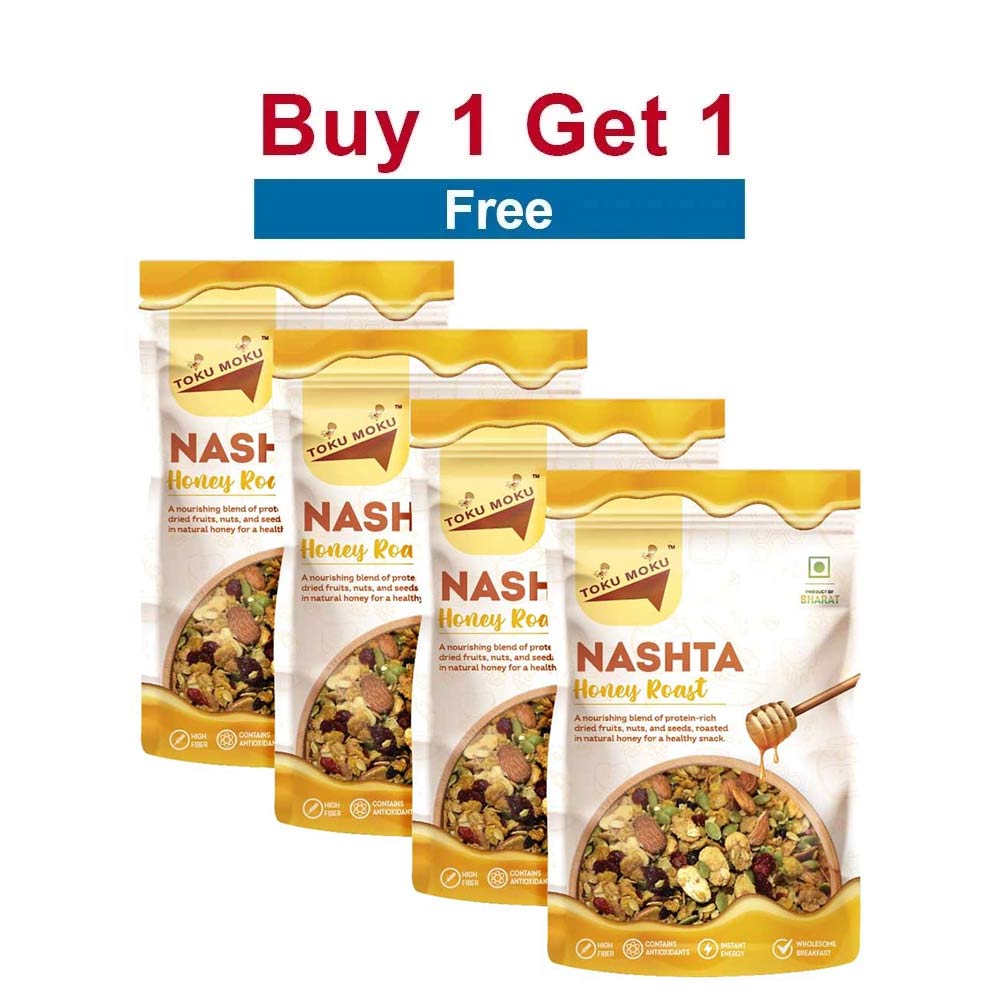 TOKU MOKU Super Breakfast Muesli Healthy Mixed Nuts with Dry Fruits, 90 g, Honey Roast (Pack of 4)