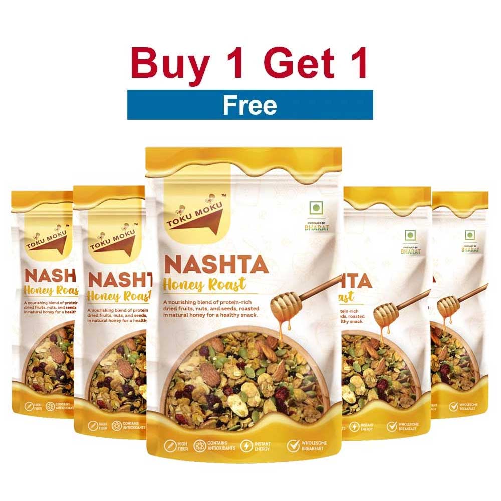 TOKU MOKU Super Breakfast Muesli Healthy Mixed Nuts with Dry Fruits, 90 g, Honey Roast (Pack of 5)