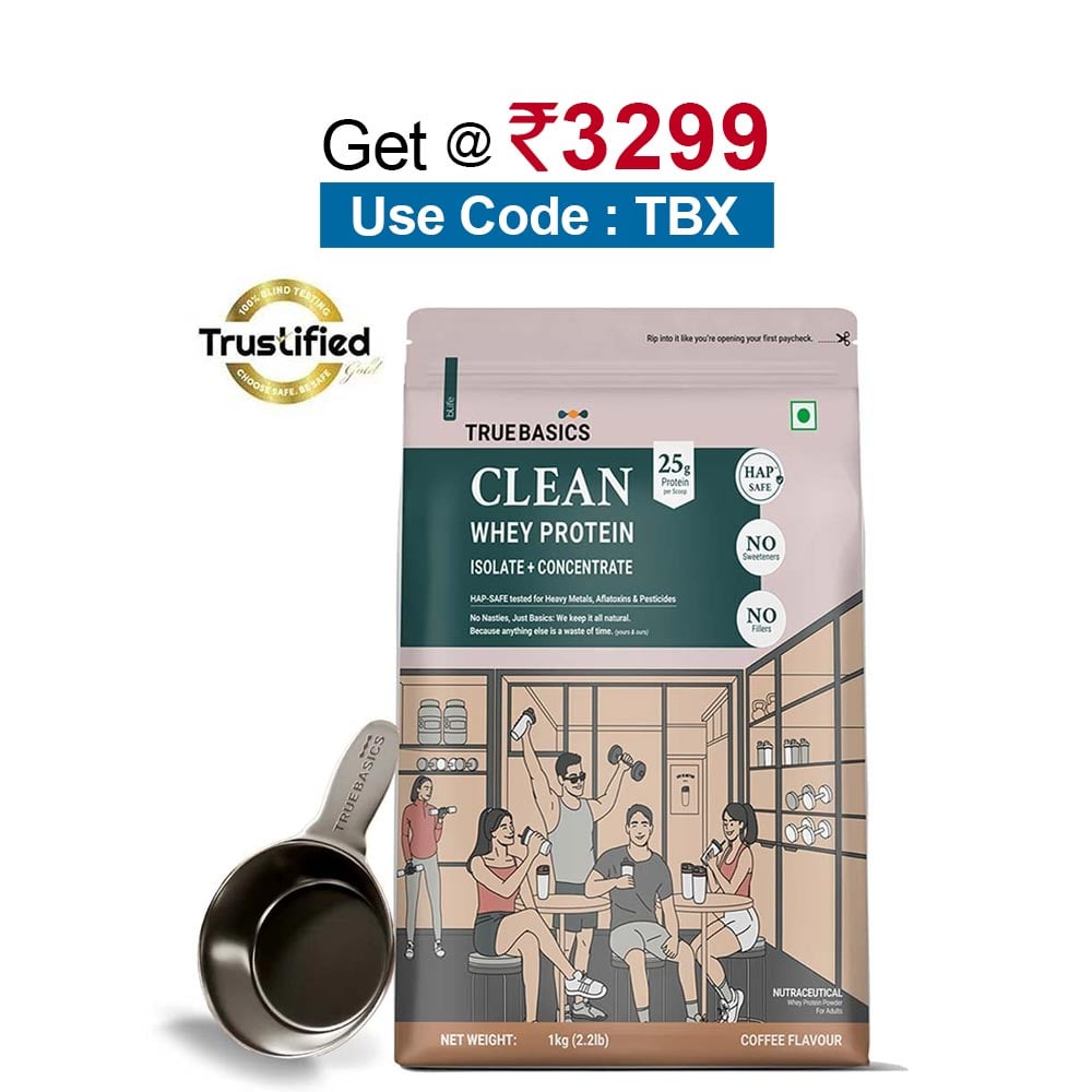 TrueBasics Clean Whey Protein (Isolate + Concentrate), 2.2 lb Coffee
