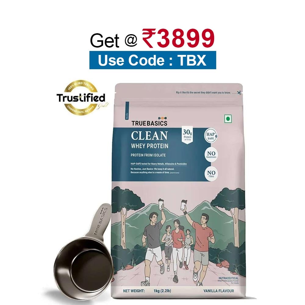 TrueBasics Clean Whey Protein (Isolate), 1 kg (2.2 lb), Vanilla