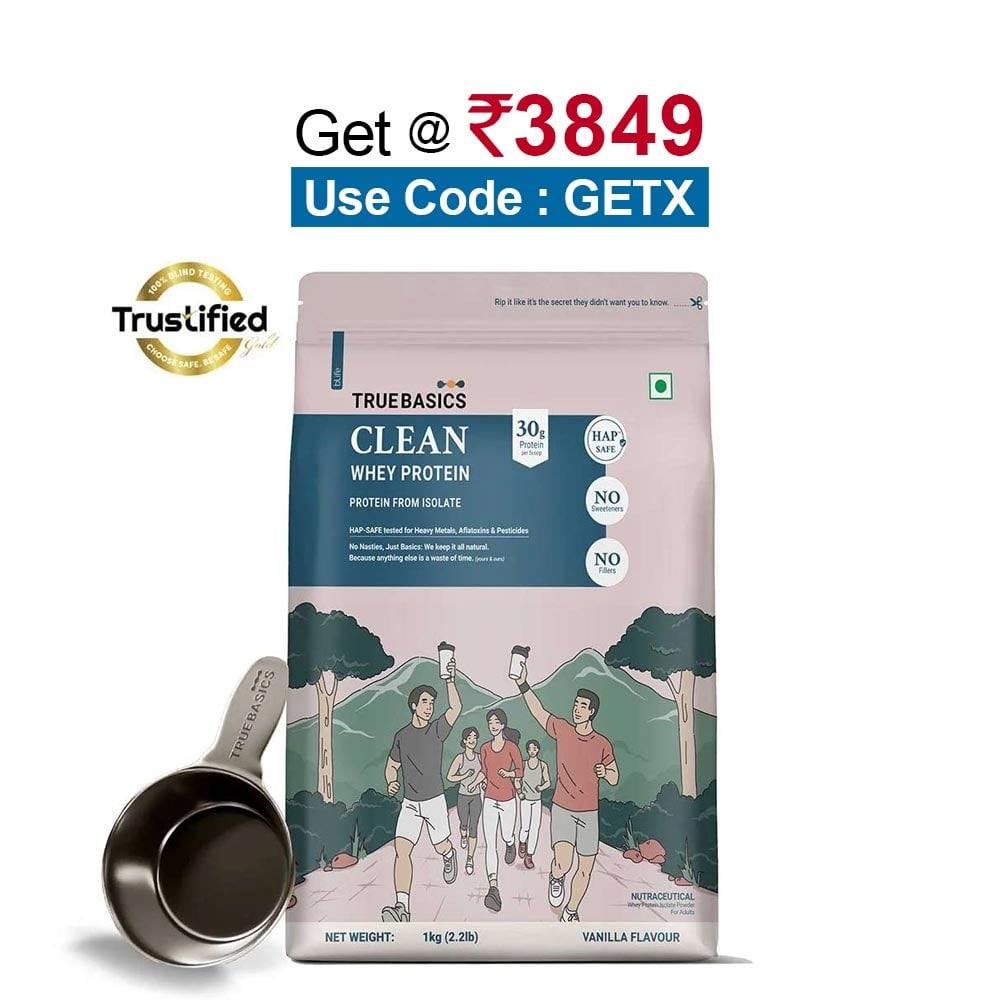 TrueBasics Clean Whey Protein (Isolate), 1 kg (2.2 lb), Vanilla