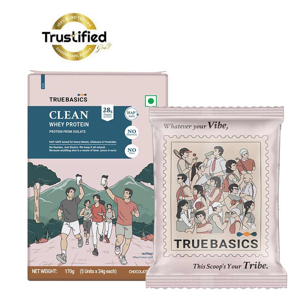 TrueBasics Clean Whey Protein (Isolate), 170 g (0.37 lb), Chocolate Pack of 5 (34 g x 5)