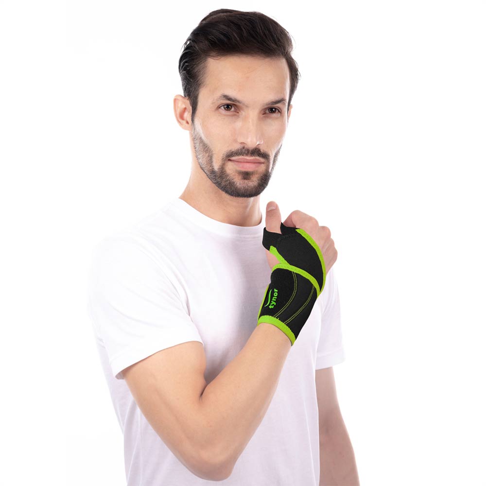 Tynor Wrist Support with Thump Loop (Neo), Black with Green, Universal