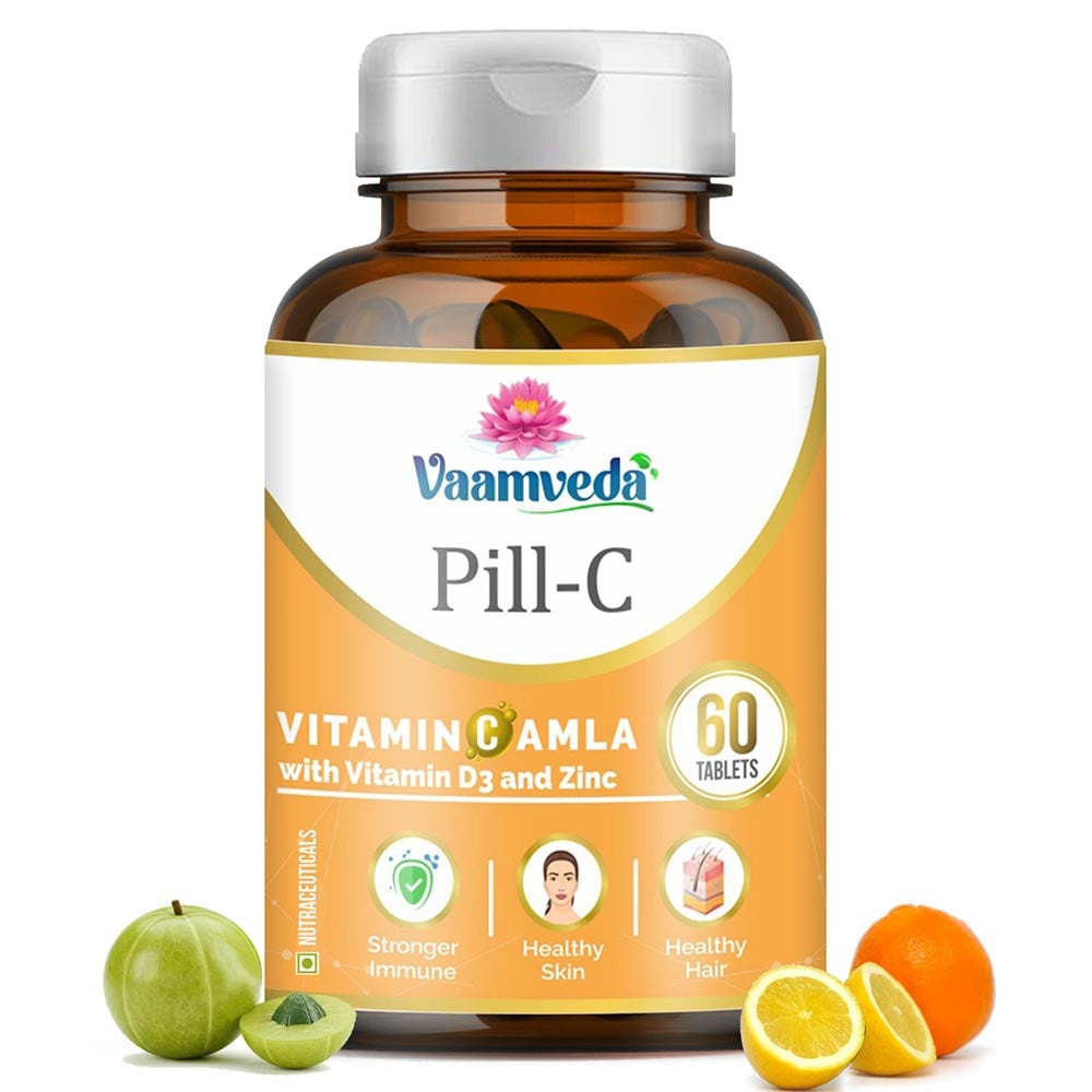 Vaamveda Vegetarian Vitamin C, 60 tablet(s), Immunity Booster Supplements with Zinc D3 for Skin Hair