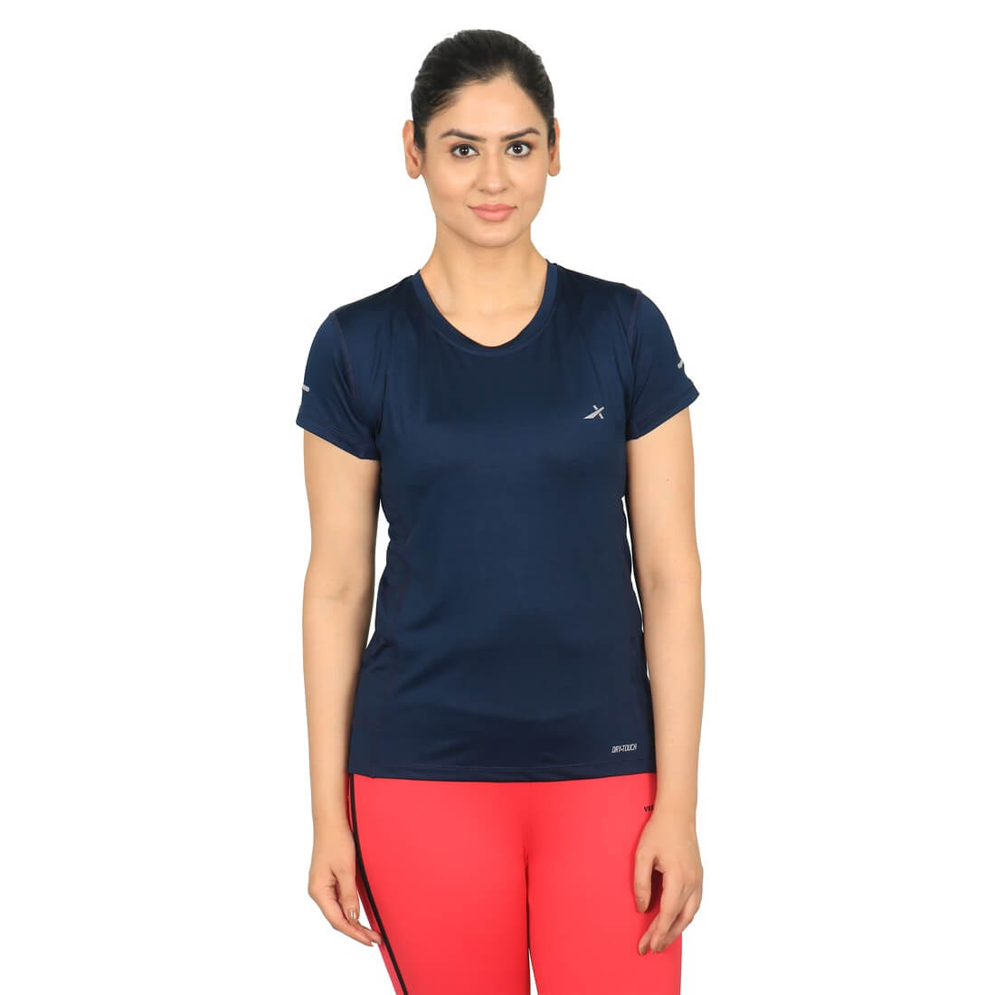 Vector X Women's Polyester Round Neck T Shirt (VTDF 015), Navy Blue Large