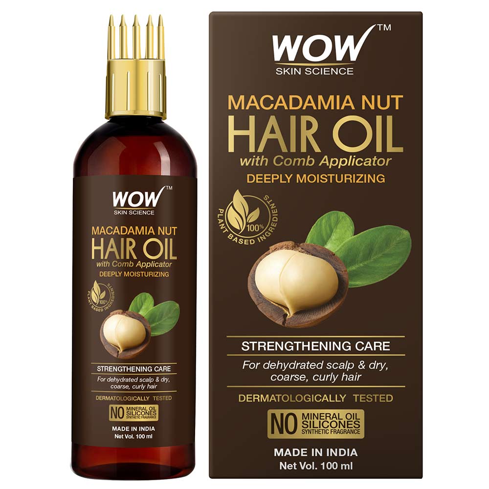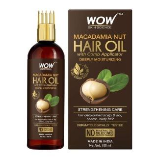 WOW Skin Science Macadamia Nut Hair Oil, 100 ml, for Dehydrated Scalp & Dry Coarse Hair (with Comb Applicator)