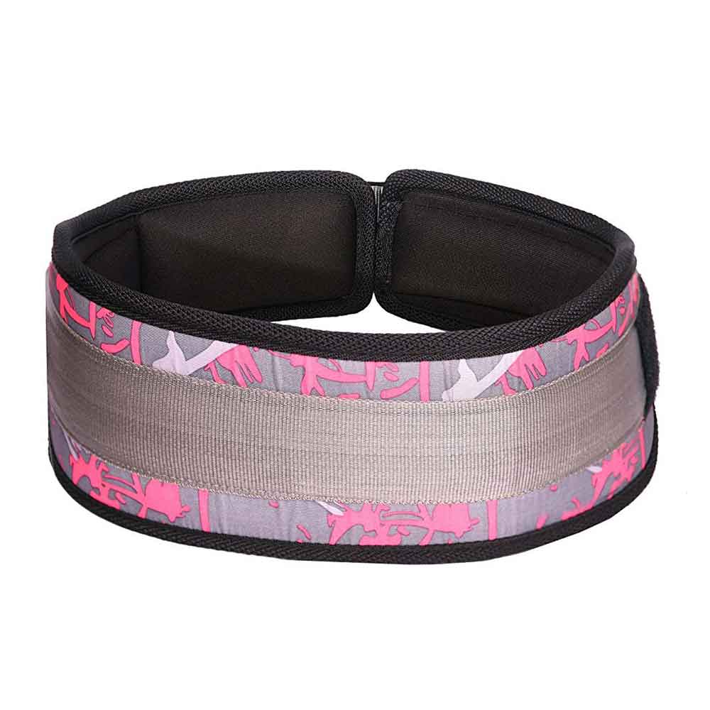 Xtrim 4 Inches Dura Belt Women Gym Fitness Weight Lifting Belt Foam Padded Leather Contoured Weightlifting Belt with Steel Roller Adjuster, Pink Large