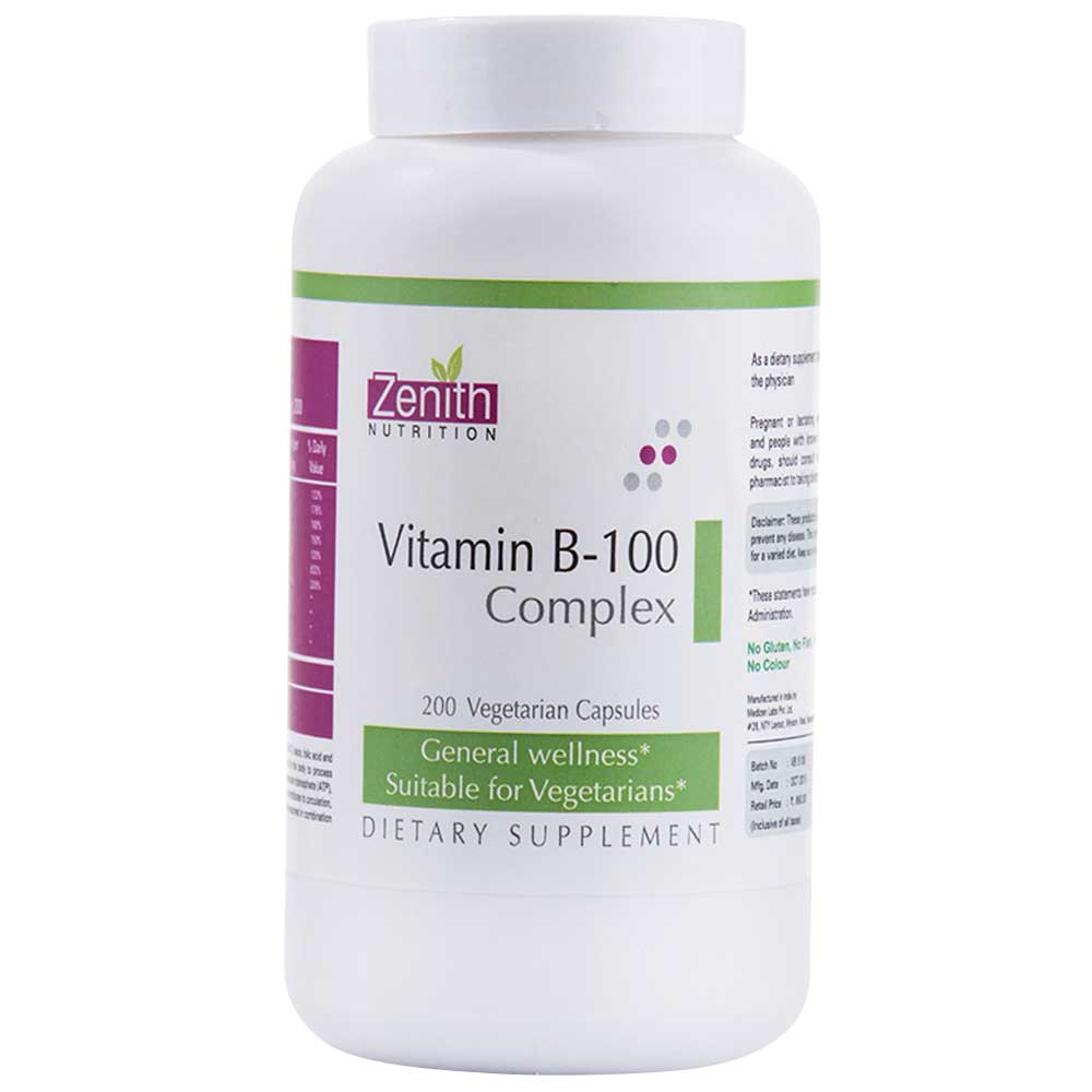 Zenith Nutrition Vitamin B-100 Complex, 200 capsules Unflavoured